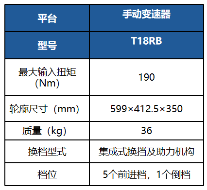 T18RB满足M16N高效发动机动力总成一体化匹配需求,在T18R平台基础上优化同步结构提升换挡性能、采用磨齿工艺提升NVH水平。T18RC适应多挡化趋势,满足商用车动力性、经济性对六挡变速器的匹配需求。技术特点
